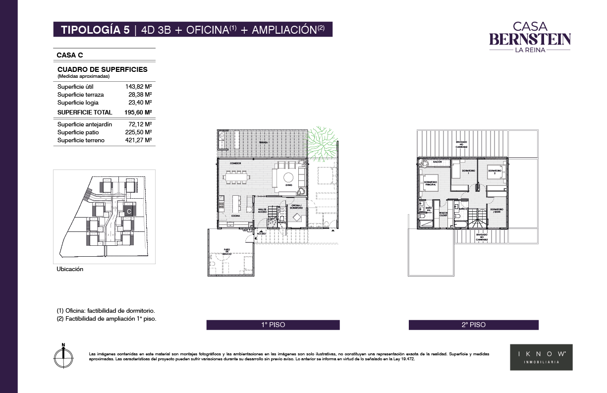 - Casas de 2 pisos de 4 Dormitorios 3 Baños, Living-Comedor, Cocina Integrada, Estar, Oficina, Logia, Jardín.